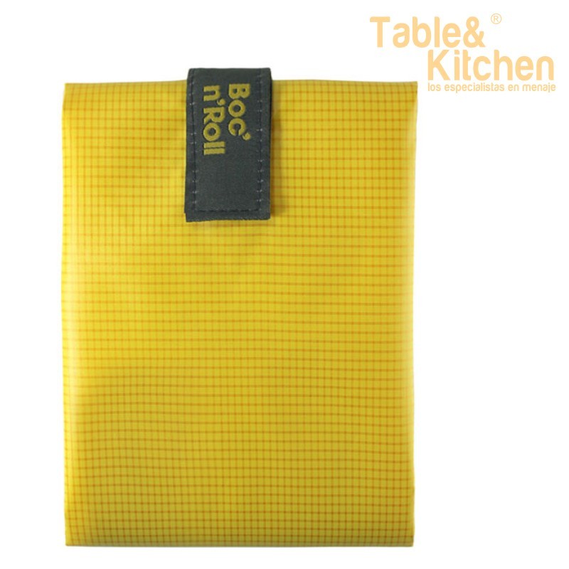 Portabocadillos Boc'n Roll Square reutilizável, ajustável, dobrável e lavável de cor amarela.