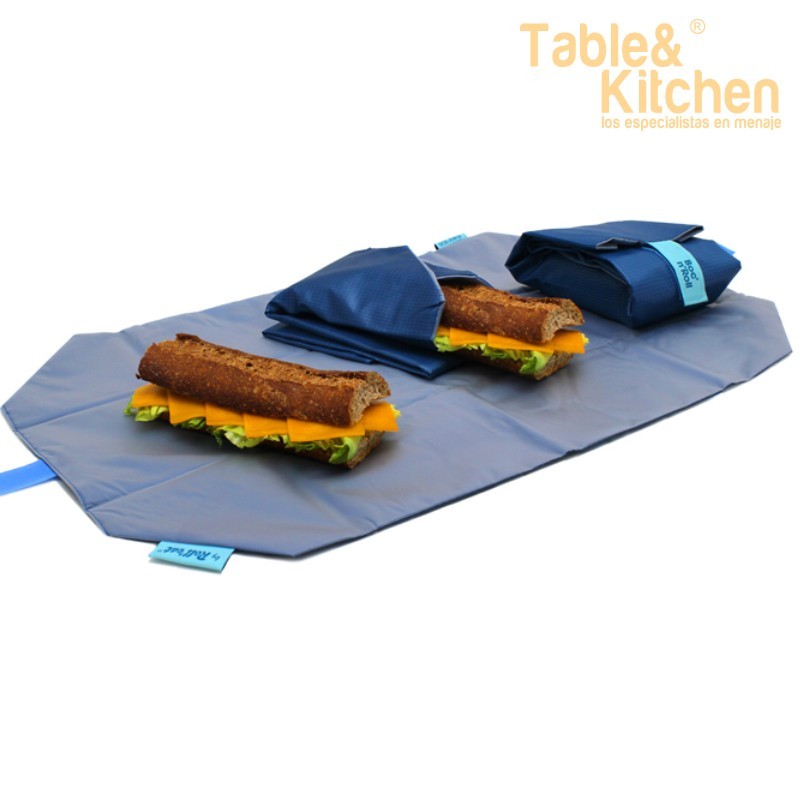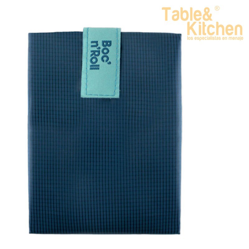 Portabocadillos Boc'n roll square reutilizável, ajustável, dobrável e lavável na cor azul.