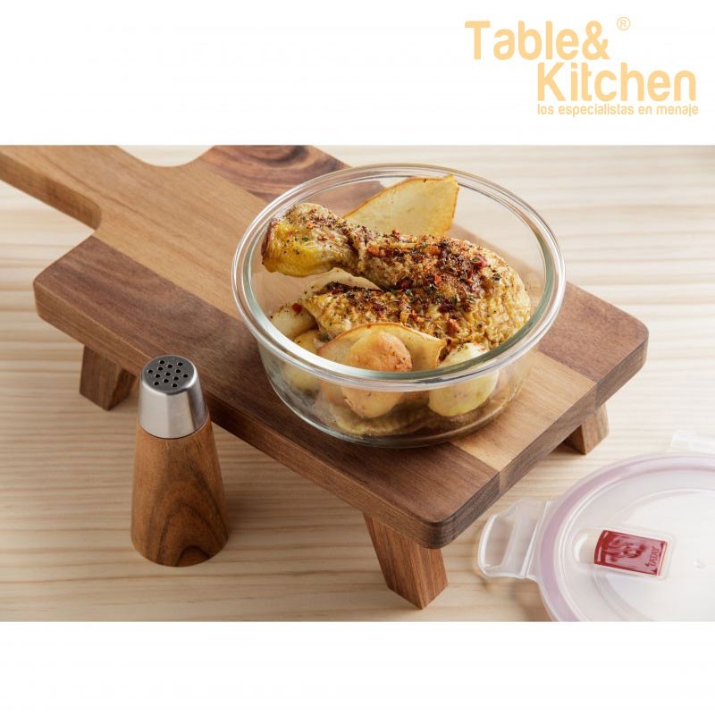 O Hermético Cristal Vermelho Cook&Eat da Tatay é um recipiente de 0,6 litros projetado para o armazenamento e transporte seguro de alimentos. Fabricado em cristal de borosilicato resistente, este hermético conta com uma tampa de plástico livre de BPA, garantindo um fechamento hermético graças à sua junta de silicone.