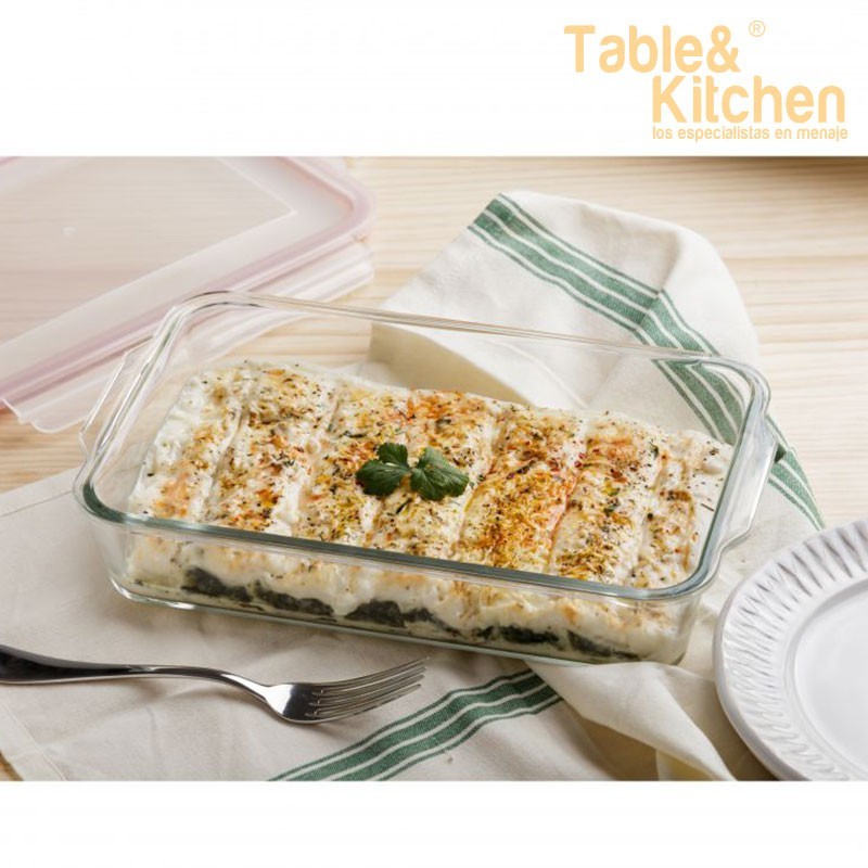 O Hermético Cook&Eat Vidro Retângulo de 2,2 L é um recipiente de armazenamento e transporte de alimentos de alta qualidade. Fabricado pela Tatay, este hermético é projetado para ser tanto funcional quanto estético, com um corpo de cristal de borosilicato resistente e uma tampa de plástico livre de BPA.