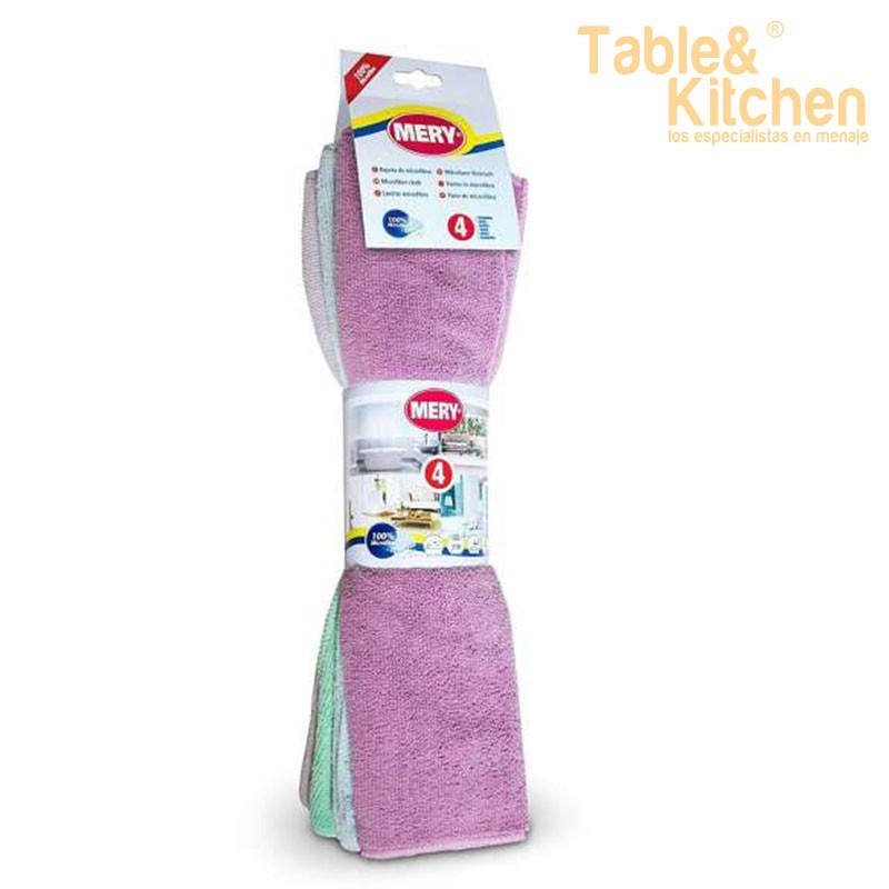 Conjunto composto por 4 panos de microfibra ideais para a limpeza de toda a casa.