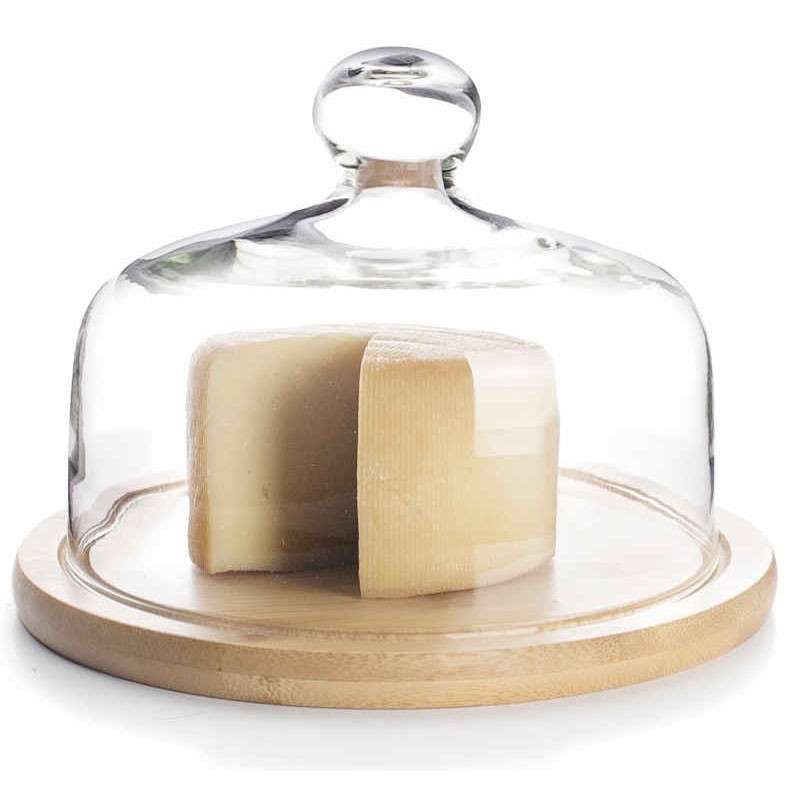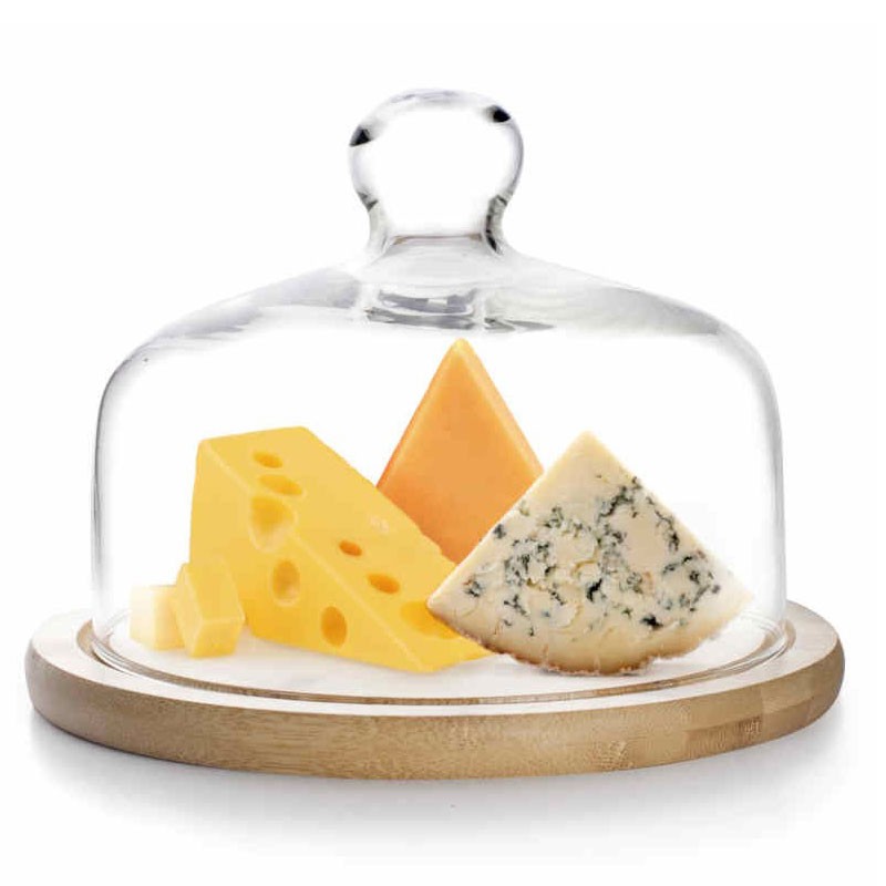 Queijera com tampa de vidro e base de madeira de 18 cm de diâmetro da marca Ibili.