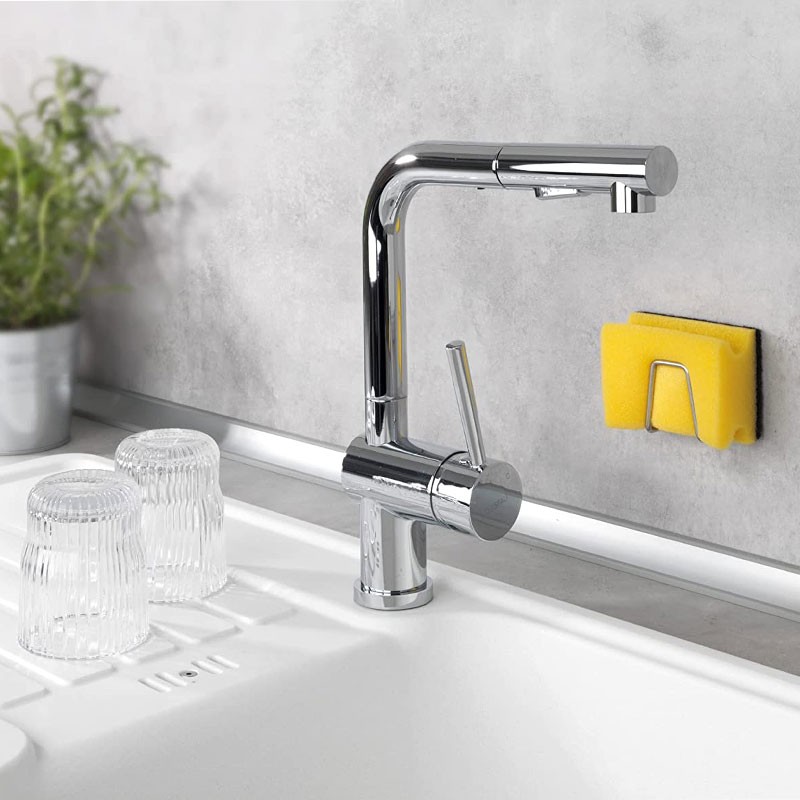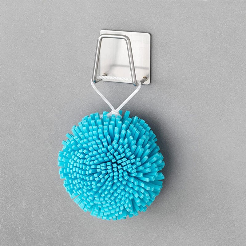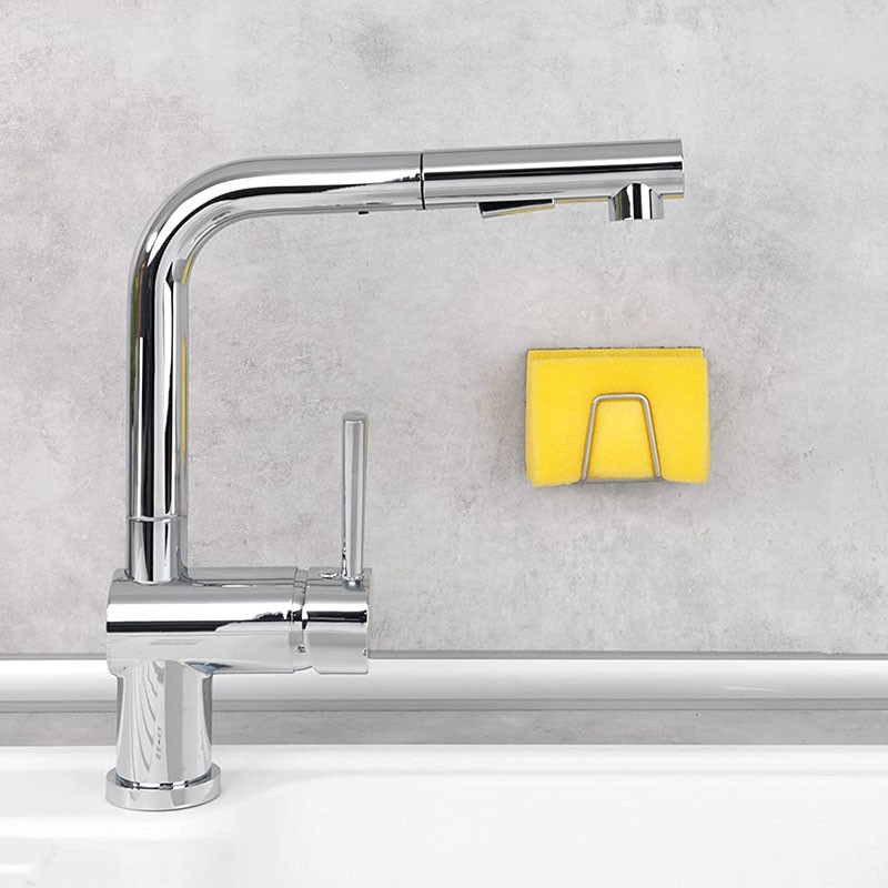 Prático suporte mural para esponja, esponja abrasiva, tábua de cortar, livro de receitas ou outros utensílios de cozinha. Obtém organização e espaço adicional na cozinha e em casa.