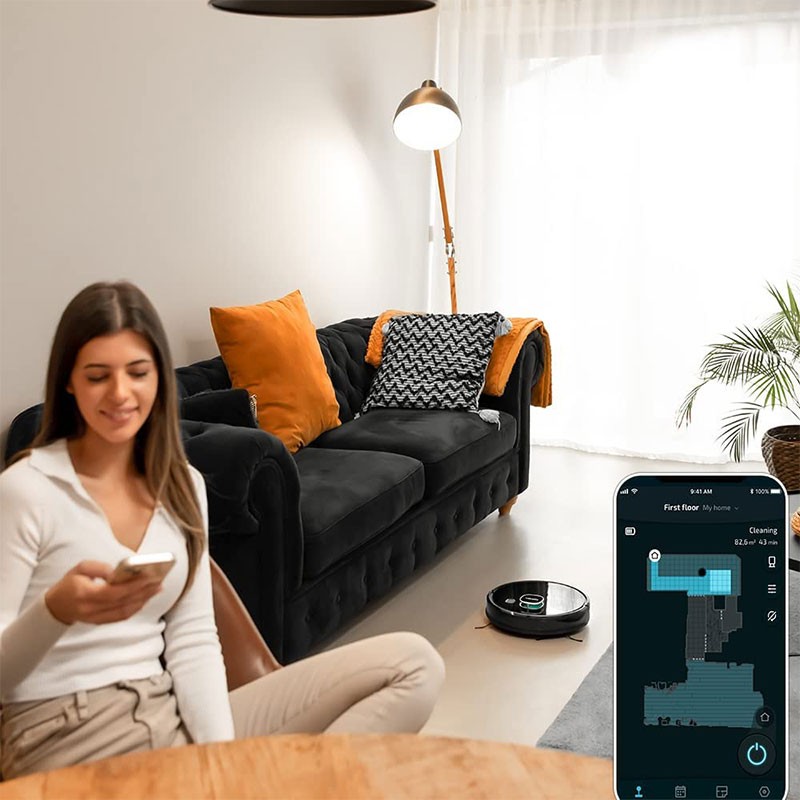 Além disso, o robô conta com tecnologia Virtual Map para memorizar o mapa de limpeza e exibi-lo no APP. Também, você pode usar VirtualVoice para controlar o robô por voz através da Alexa.