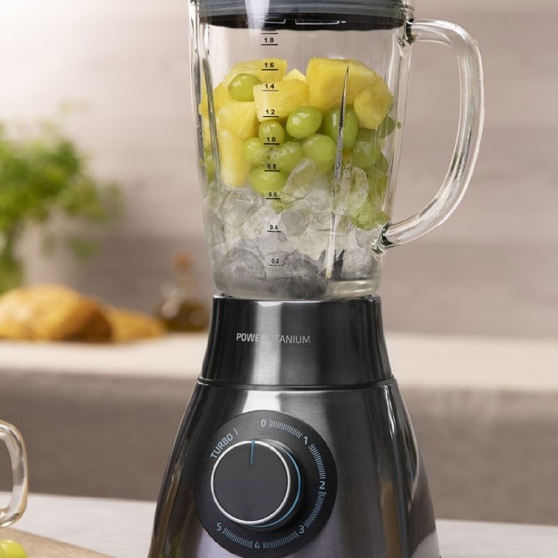 O copo termorresistente de vidro fundido com 1,8 litros de capacidade permite que você prepare tanto elaborados quentes quanto frios. Além disso, conta com 5 velocidades para se adaptar às suas necessidades culinárias.