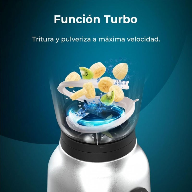- Função Turbo: Tritura e pulveriza à máxima velocidade até os alimentos mais duros, incluindo gelo.