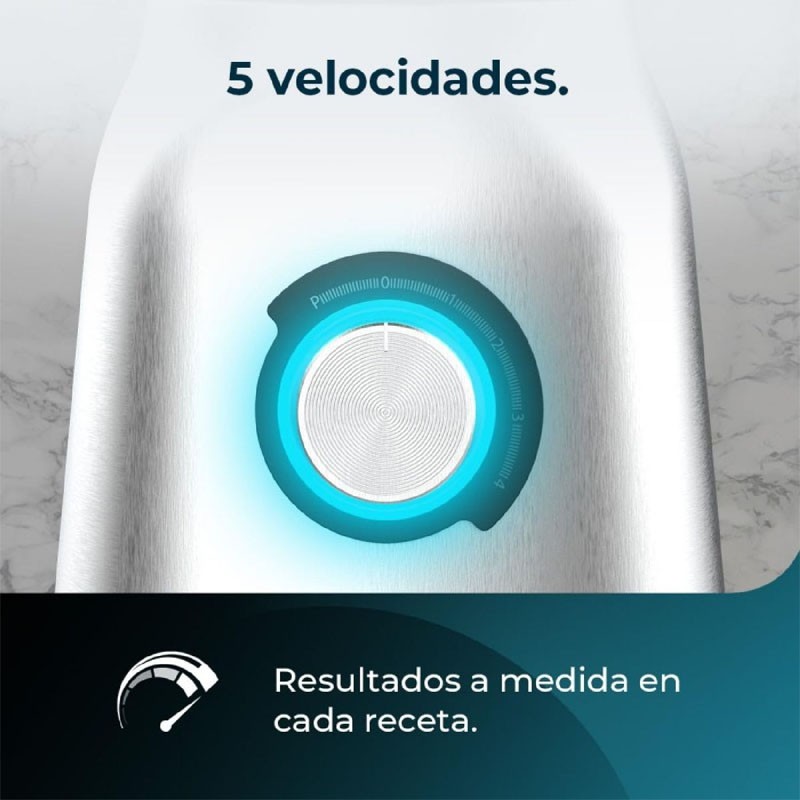 - Cinco velocidades: Ajuste a velocidade para se adaptar às necessidades de cada alimento.