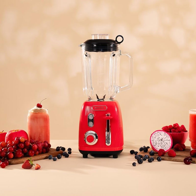 Desfrute da potência e estilo retro da Batedeira de Vaso Power Black Titanium 1800MAX Inox, perfeita para todas as suas criações culinárias.