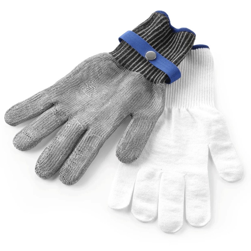 Conjunto de 2 luvas: interior em HPPE e exterior em aço inoxidável.