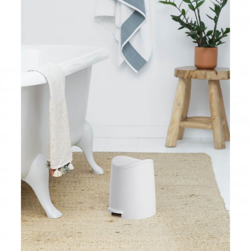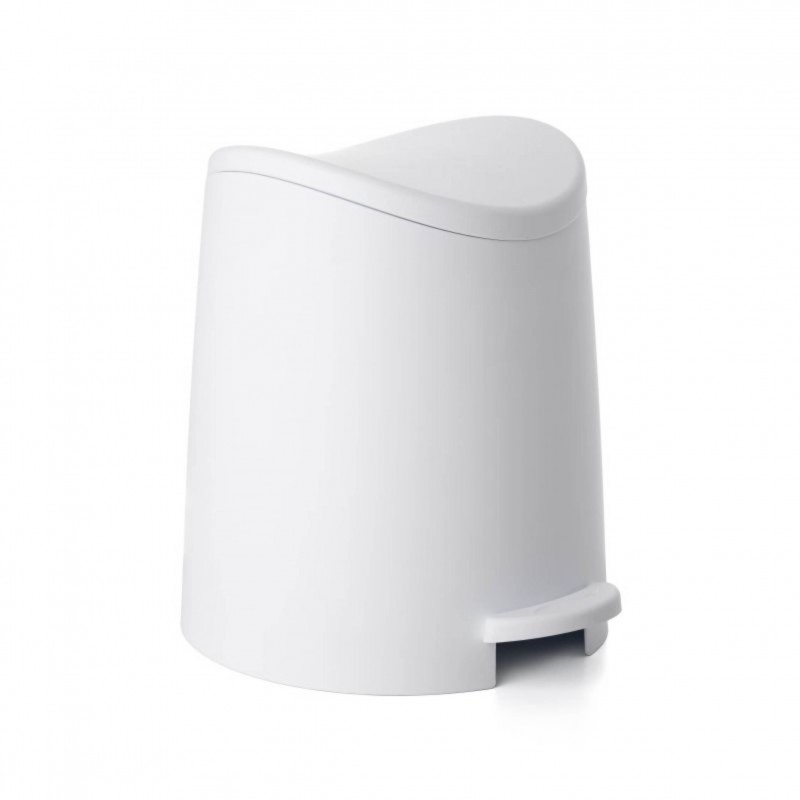 É uma lixeira de pequeno tamanho e com um design original, ideal para banheiros ou quartos.