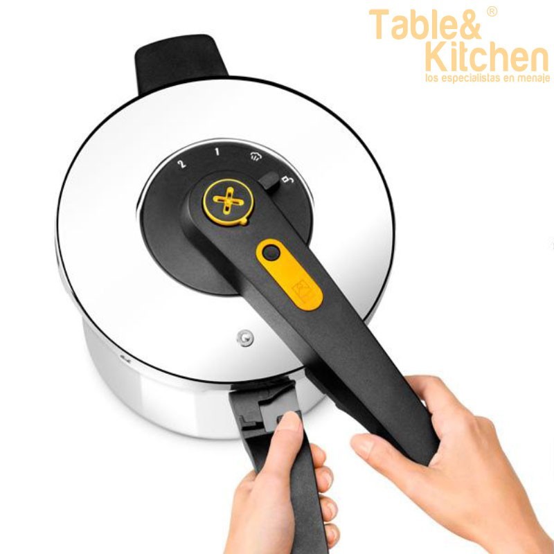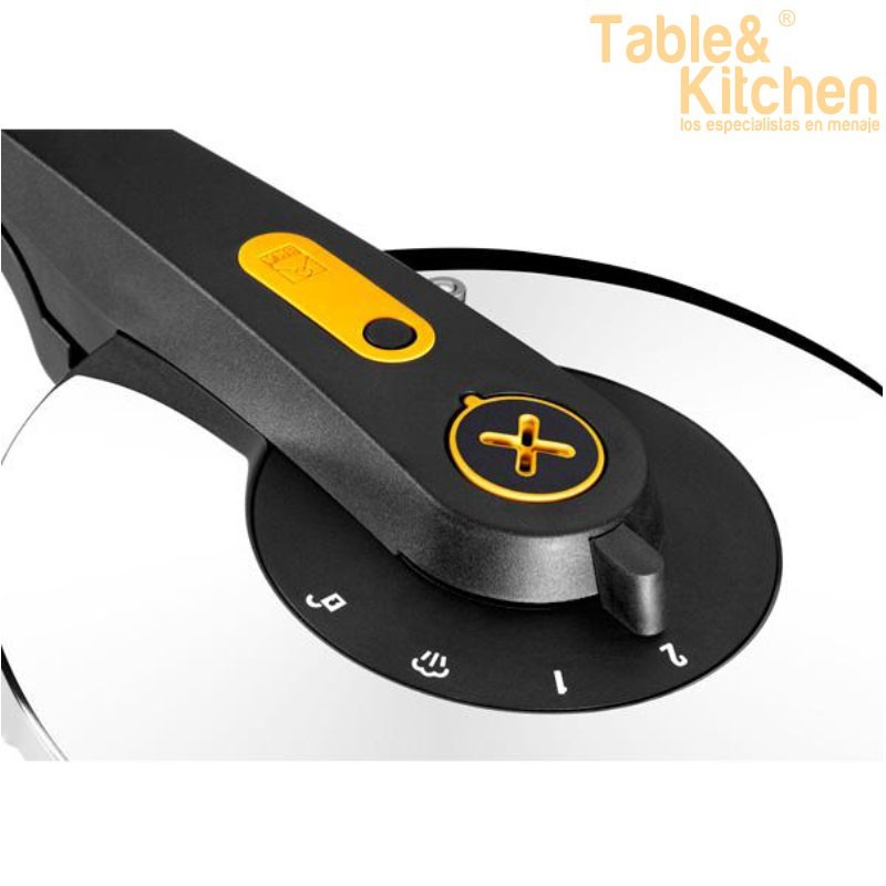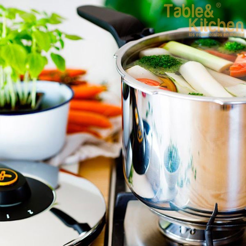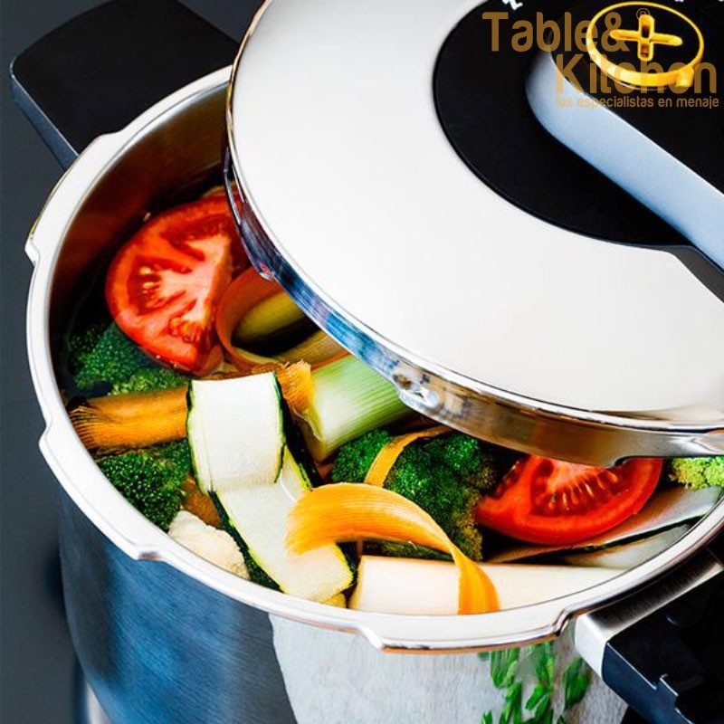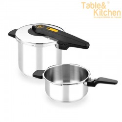 Set Duo panela de pressão Excellent da Bra, fabricada em aço inoxidável 18/10 com triplo fundo difusor. A panela de pressão Excellent da Bra permite economizar até 70% de tempo e energia em comparação a uma panela de cocção tradicional, equipada com a melhor tecnologia em segurança e funcionamento. É fabricada em aço inoxidável 18/10 muito resistente ao desgaste, com triplo fundo difusor que consegue uma distribuição homogênea do calor, sendo apta para todo tipo de fogões, incluindo indução. Dispõe de 3 sistemas de segurança à pressão e 1 sistema de bloqueio de abertura, cumprindo com a normativa CE.