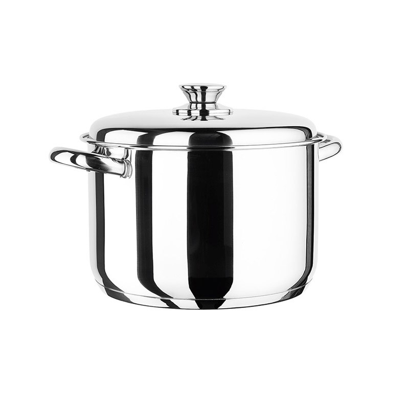 Panela de aço inox para o lar, com acabamento brilhante.