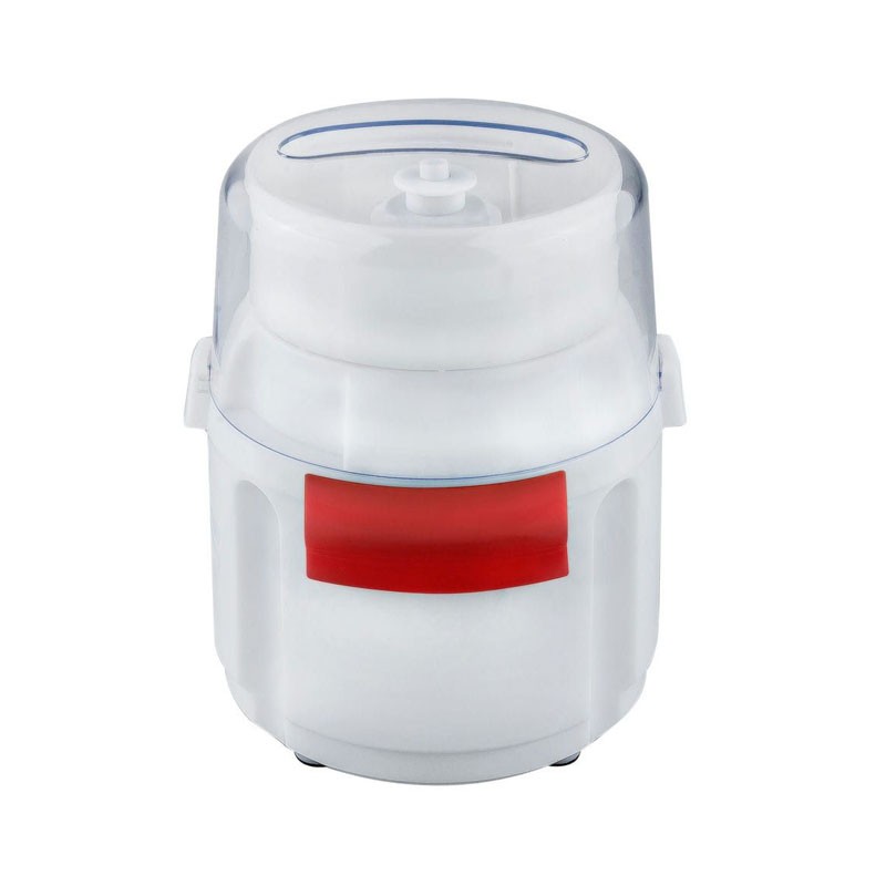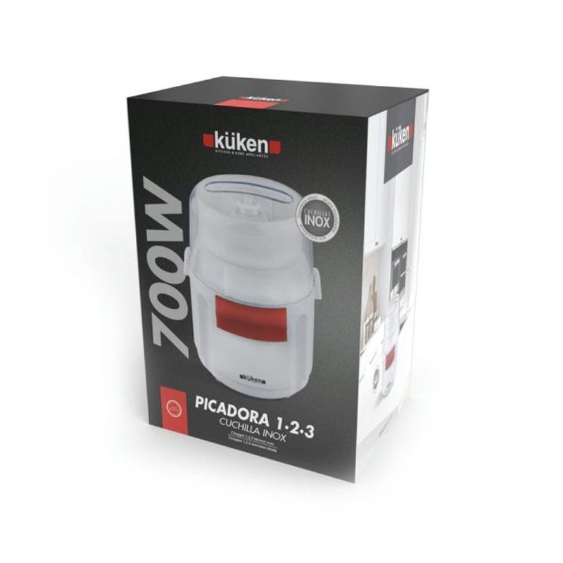 Picadora elétrica de 700W de potência com dupla lâmina de aço inoxidável.