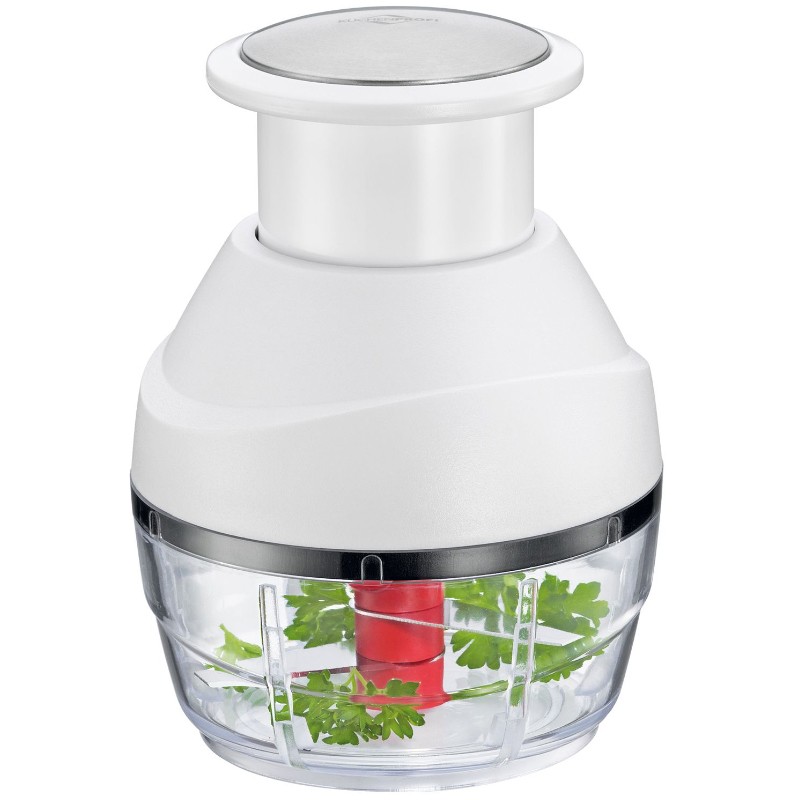 Se gostas de cozinhar de forma prática e saudável, esta ferramenta é essencial. A picadora PUSH da Kuchenprofi é ideal para cortar pequenas quantidades de frutas, legumes, ervas frescas ou frutos secos com rapidez e facilidade. Basta pressionar o botão superior para que as lâminas comecem a girar e cortar com precisão. Precisas de umas nozes para o iogurte? Um pouco de salsa para o molho? Ou uma cenoura ralada na hora? Basta um gesto!