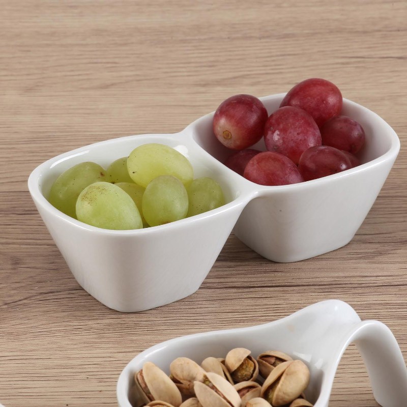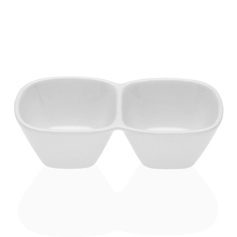 Mini fonte de dois compartimentos fabricada em porcelana.