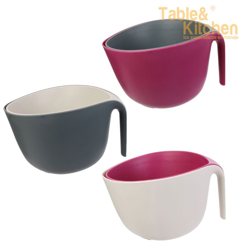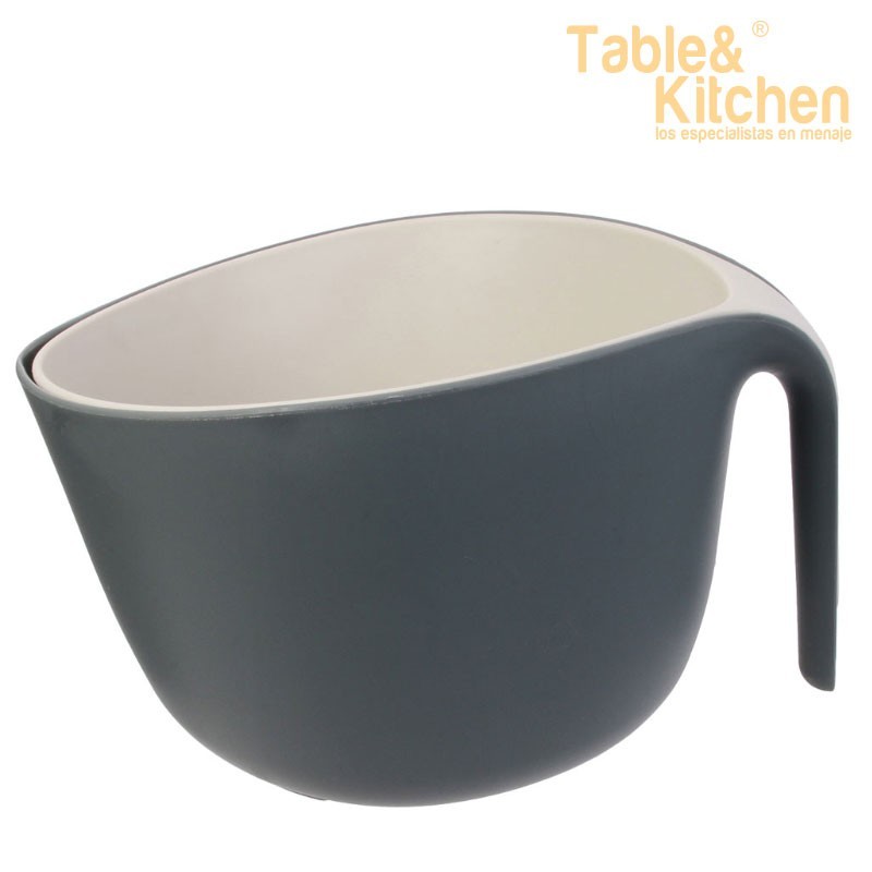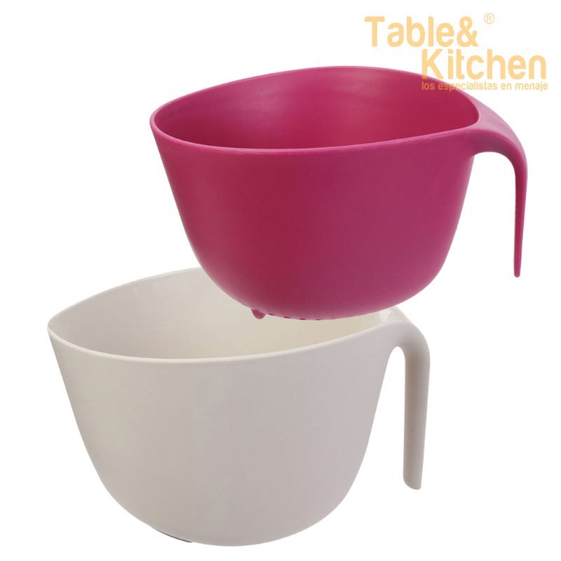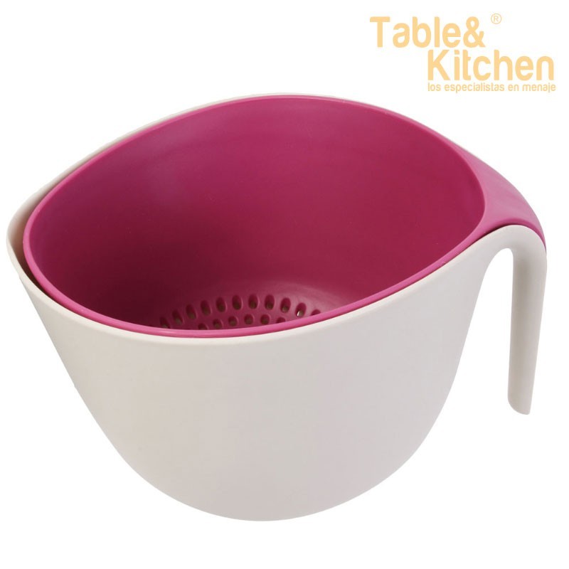 Tigela escorredora 2 em 1 ideal para economizar espaço na cozinha com capacidade de 3 litros.