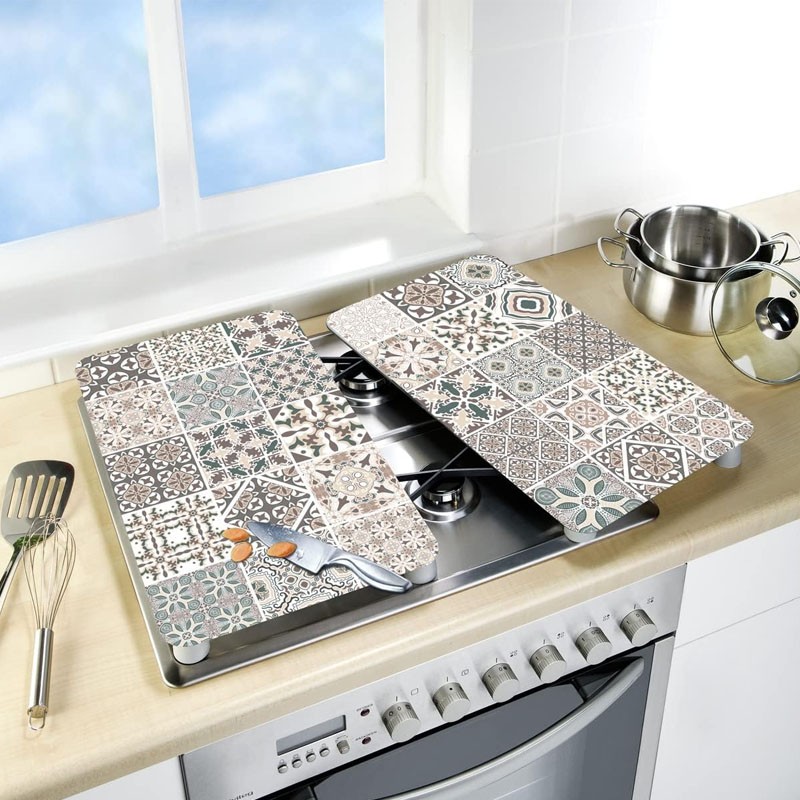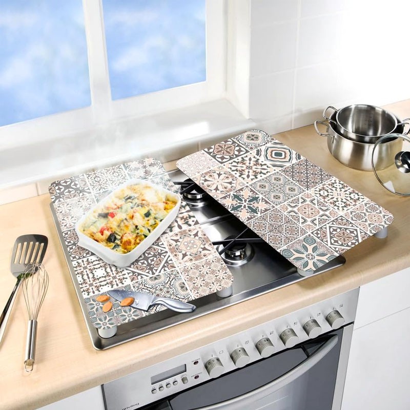 Tampas de vidro para decorar e proteger cozinhas cerâmicas, elétricas, a gás... universais, modelo Wenko Azulejos.