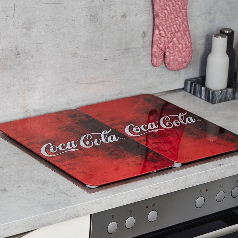 Tampas de vidro para decorar e proteger cozinhas cerâmicas, elétricas, a gás... universais, modelo Wenko Coca Cola.