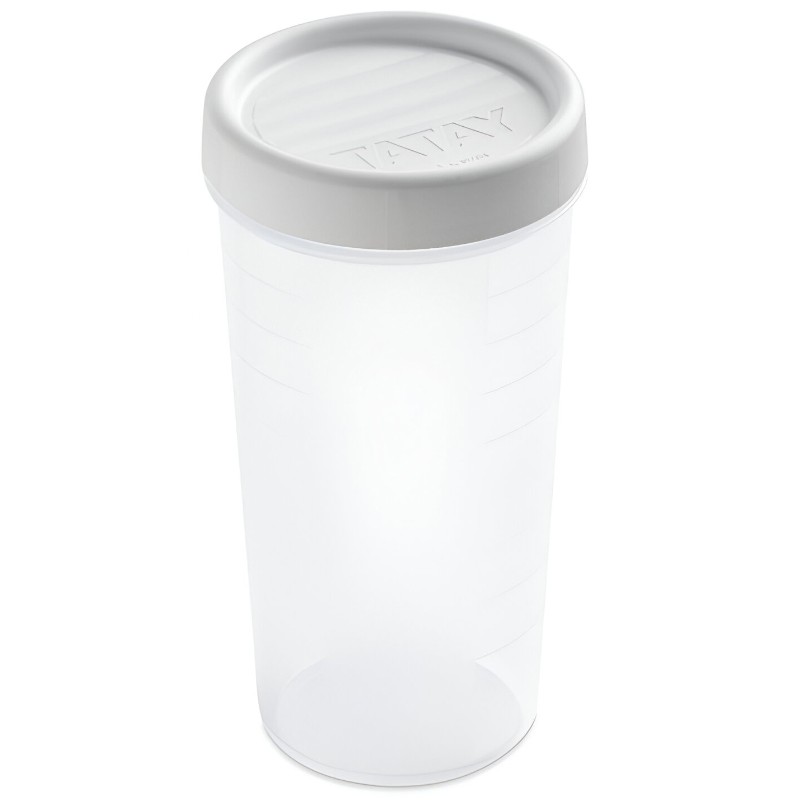 Os TAPER COM TAMPA TATAY são fabricados em plástico, livre de BPA, e contam com um sistema antigotejamento. São aptos para micro-ondas, congelador e lava-louças.