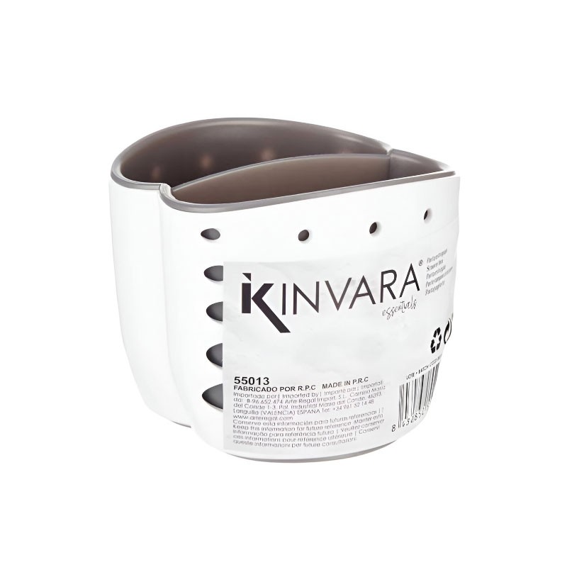 A sua estrutura dupla permite separar diferentes acessórios de limpeza, tornando tudo mais prático e higiénico. O design em branco e cinza encaixa facilmente em qualquer estilo de cozinha, com um toque moderno e limpo.