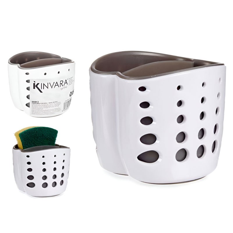 Compra o Suporte para Esponjas Duplo em Plástico Branco e Cinza KINVARA ao melhor preço com envio urgente em table&Kitchen