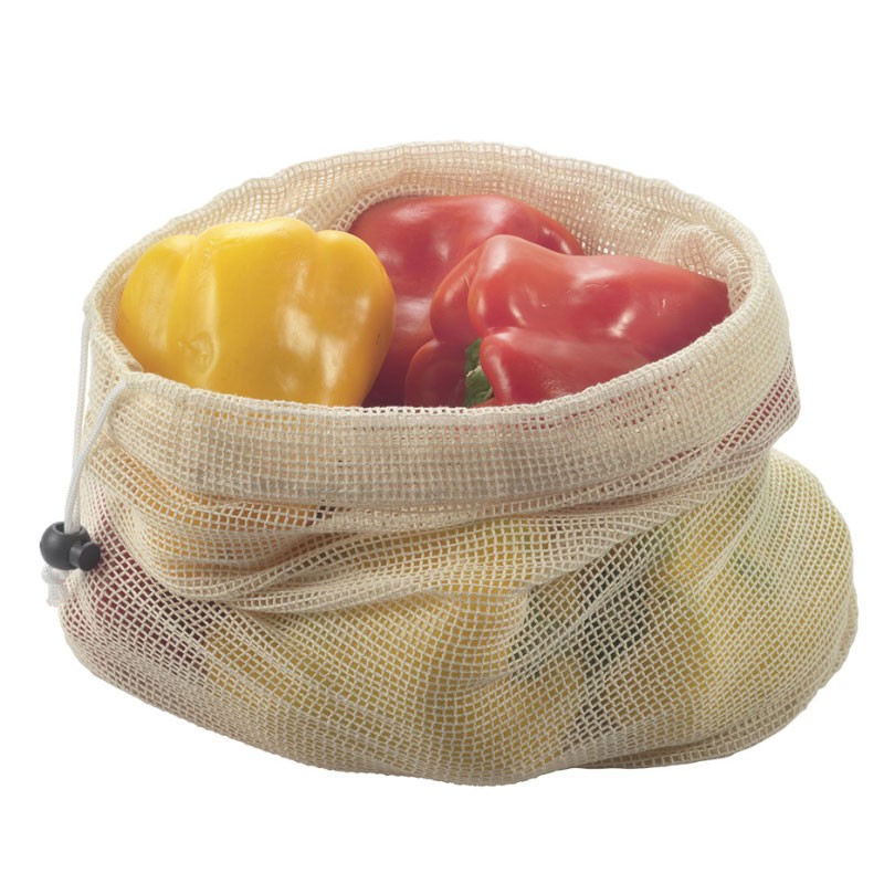 Feita de algodão durável, esta bolsa é perfeita para transportar frutas e verduras frescas sem gerar resíduos plásticos.