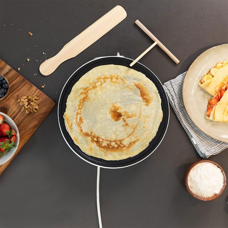Tamanho Ideal do Seu Crepe: | A placa tem um diâmetro de 30,5 cm, uma superfície mais que suficiente para preparar uma infinidade de crepes no tamanho que você desejar. |