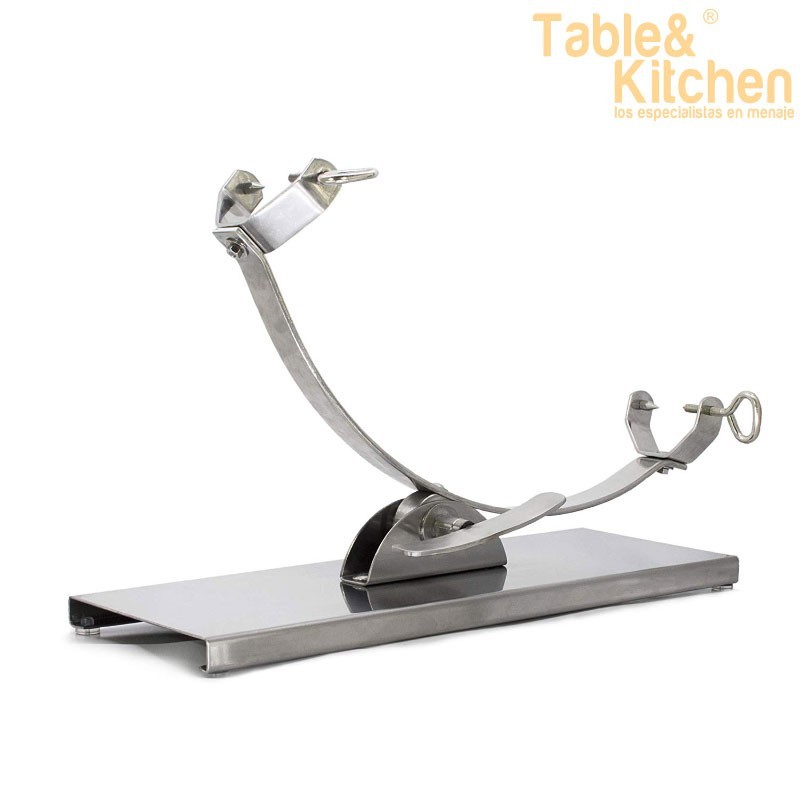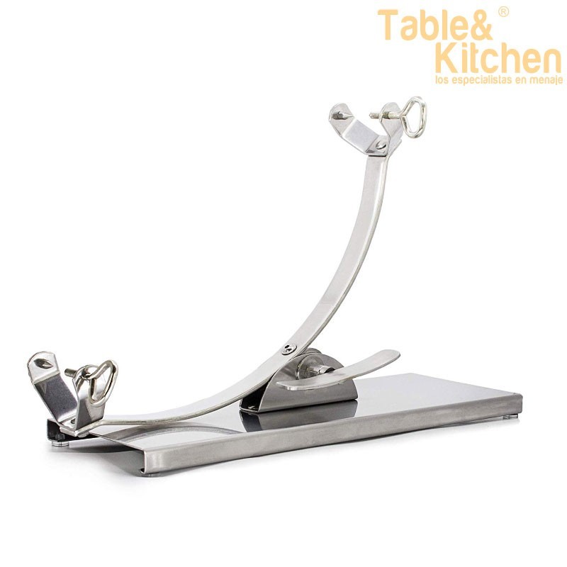 O Suporte Jamonero Balancín de Aço Inoxidável é ideal tanto para uso profissional quanto doméstico. Sua característica principal é a função de balancín que facilita o corte do jamón de maneira confortável e precisa.
