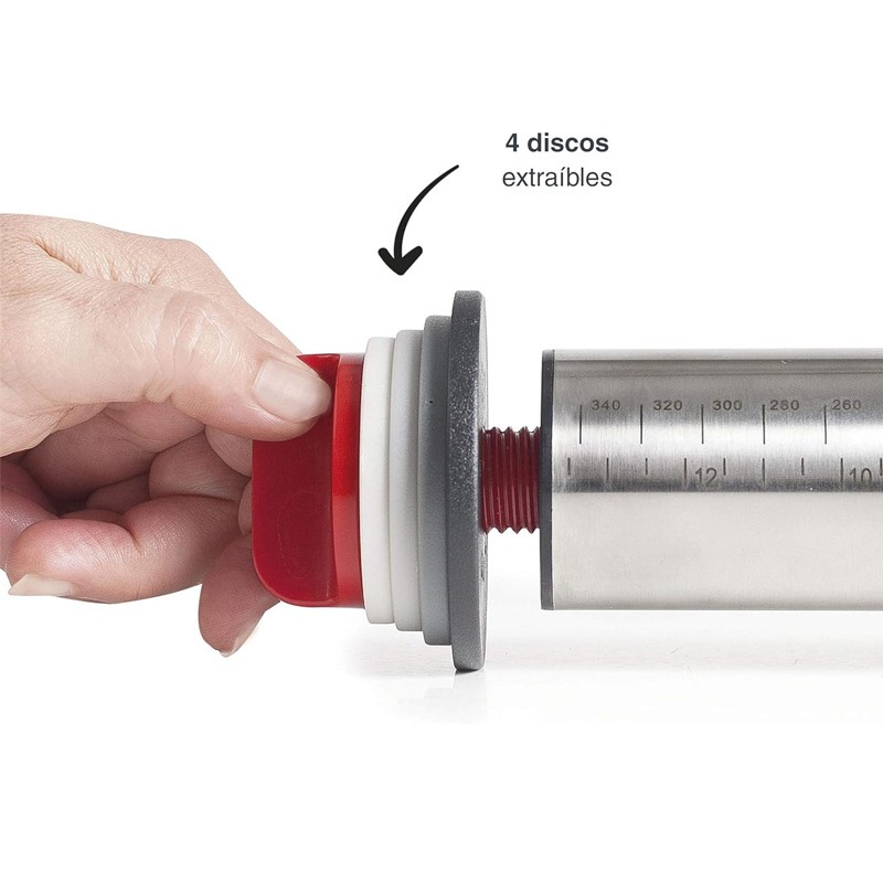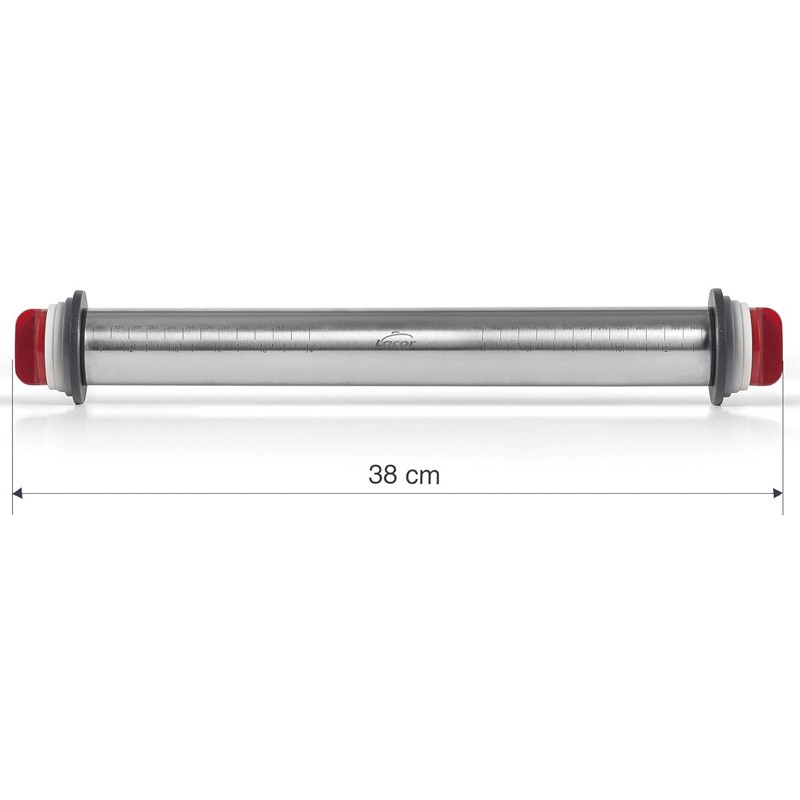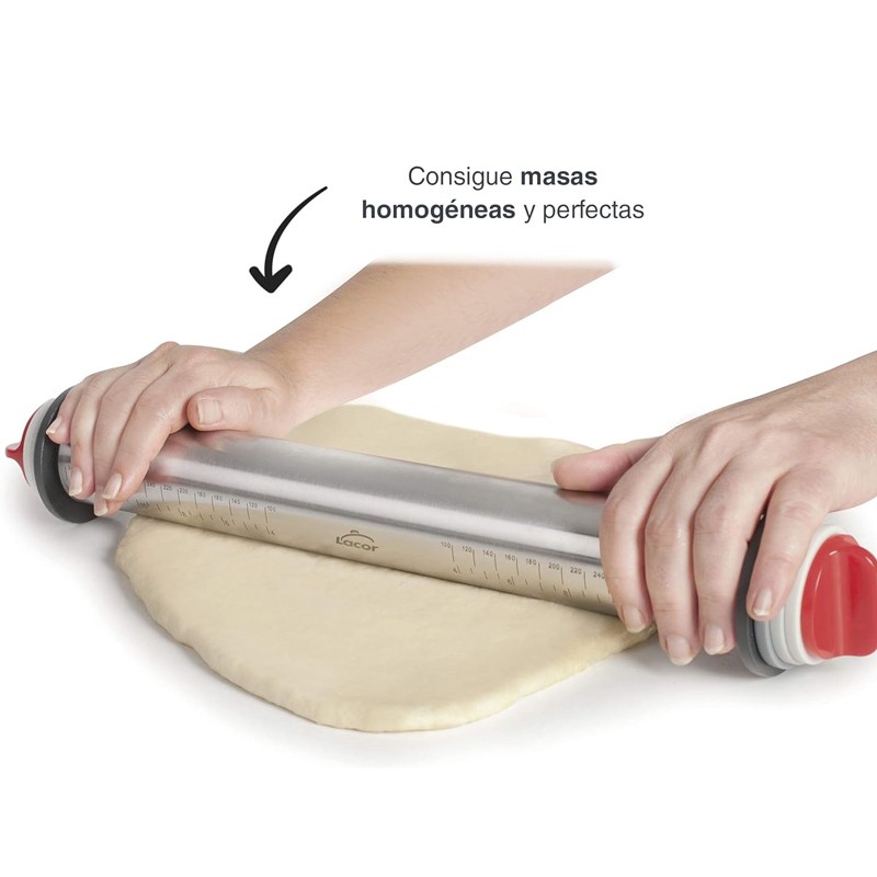 Rolo de massa para cozinha com 4 discos removíveis, aço inoxidável, marcas de medição gravadas e para todos os tipos de massas, da marca Lacor.