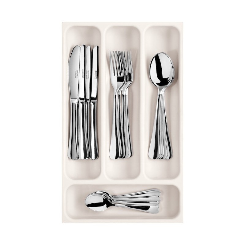 Divisor para gavetas FlexiSPACE projetado para o armazenamento organizado e higiênico de talheres.