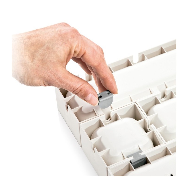 As bases e conectores para bandejas FlexiSPACE, nas quais pode ordenar de maneira simples os utensílios de cozinha, são um complemento útil para aproveitar ao máximo os espaços.