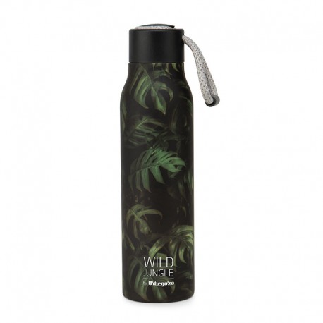 Garrafa de aço inoxidável com parede dupla de 600 ml e rosca térmica.