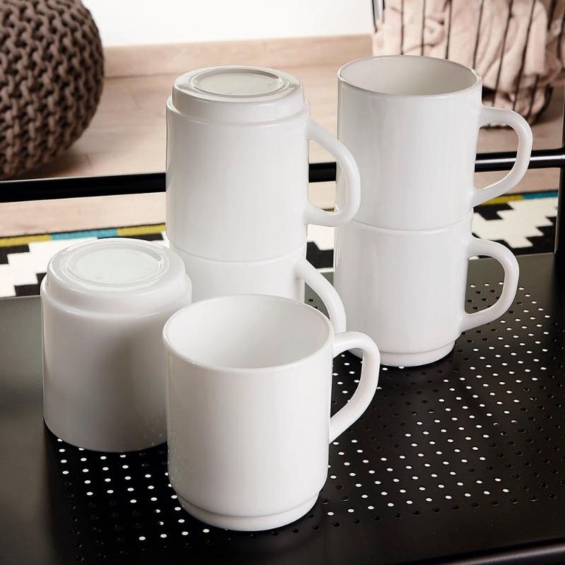 É uma caneca resistente a choques graças ao fato de ser feita de vidro temperado.