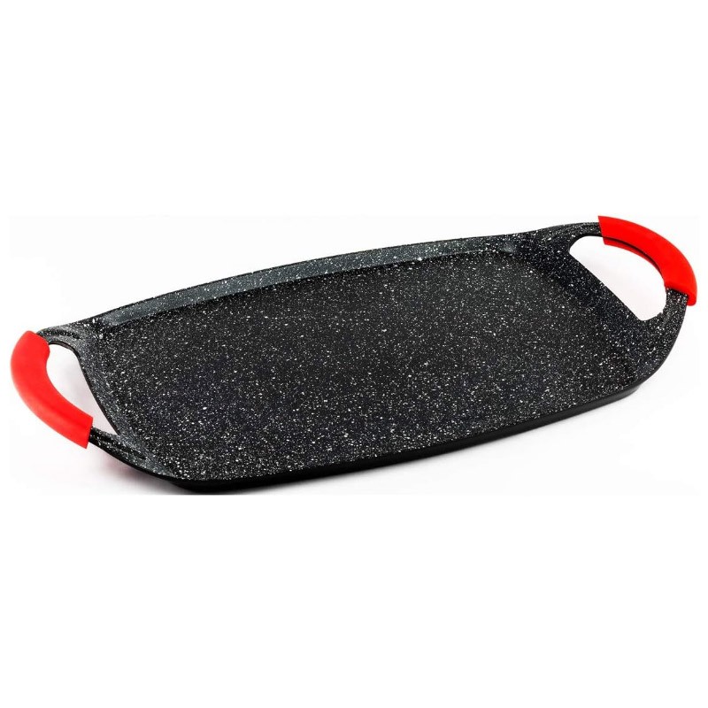 É uma chapa muito prática para quando precisamos cozinhar e uma frigideira não é suficiente. Graças ao seu formato panorâmico podemos colocar peixes ou carnes em maior quantidade de uma vez e peças de maior tamanho.