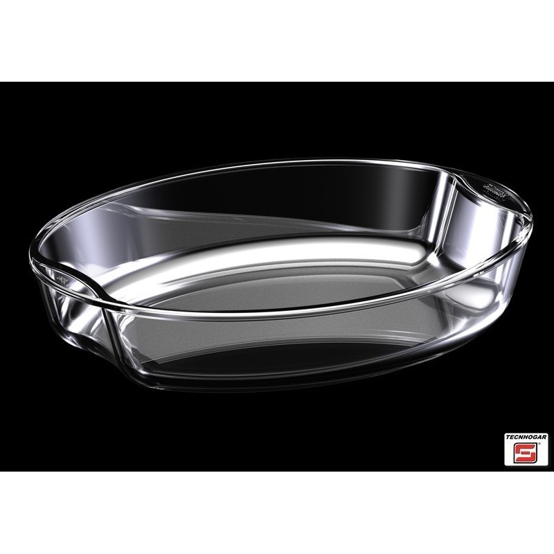 Fonte oval fabricada em vidro borosilicato, adequada para forno, micro-ondas e lava-louças.