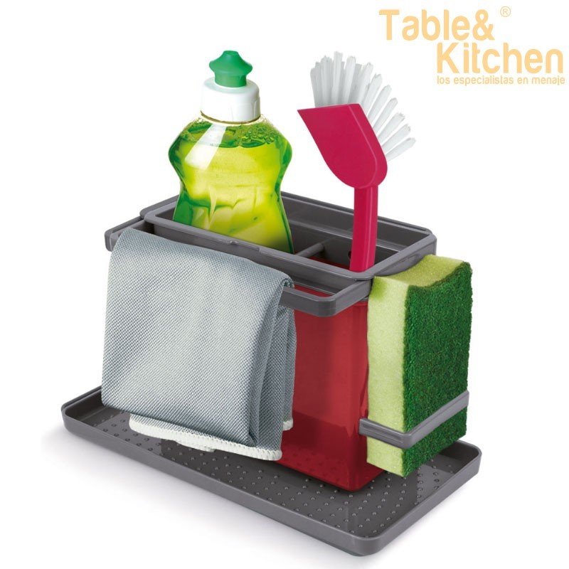 Organizador modulável para pia Tidy-Tex, projetado para armazenar os acessórios de limpeza de maneira eficiente, ocupando o mínimo espaço.